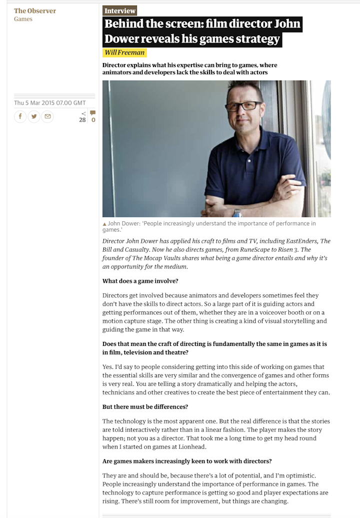 John was featured in this article about working as a Voice Director in games.